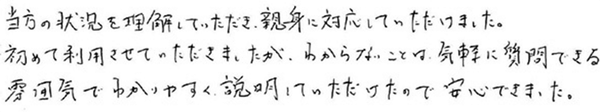 親身な対応でわからないことは丁寧に説明してもらえた。