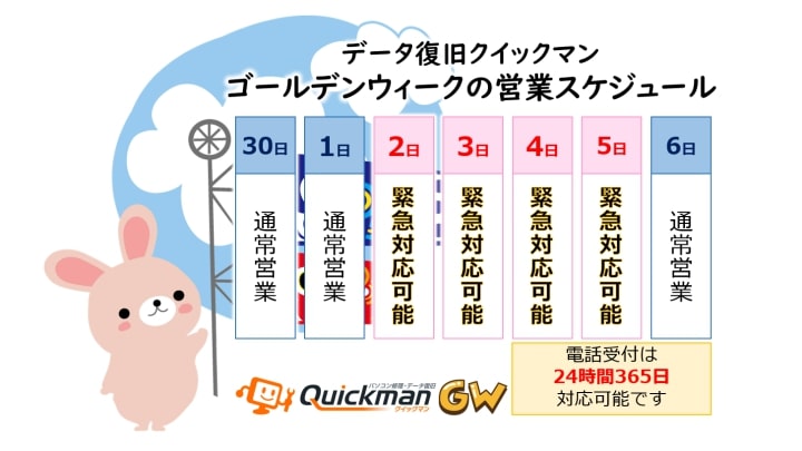 いつもですと故障やミスが原因で、アクセスできなくなったデータの復旧をクイックマンへご依頼頂いておりますが、