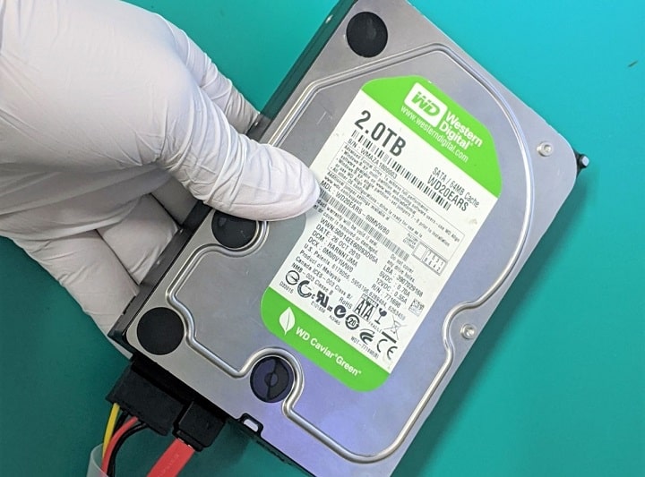 500GBの内蔵ハードディスクをノートパソコン本体から取り外し、ハードディスク専用の診断機で診断しました。診断の結果、論理領域の先頭部分付近に不良セクタが発生していることを確認しました。専用機器でデータ読み取りの負荷を調整することによって、データがふっきゅうできる可能性がある為物理障害としてご対応いたしました。