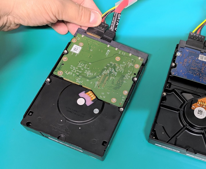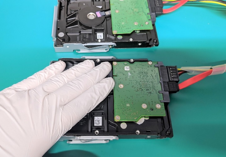 障害が発生したハードディスクを専用機器にて初期診断を行いました。専用機器上では特に物理的な障害も見つからなかったため、論理障害として対応を行う案内をしました。念のために、専用機器上では専用機器上ではデータ領域へのアクセスが確認できたのですが、作業用のパソコンに接続すると、フォーマット要求が表示されてしまったため、解析作業を行う必要があると判断しました。