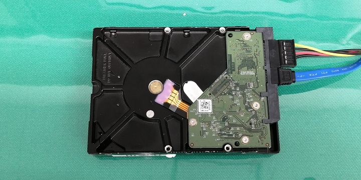 初期診断を行うために障害発生時のハードディスクの構成で心斎橋本店へお送りいただき、診断を開始しました。初期診断の結果、2番のスロットで使用されているハードディスクから不良セクタが見つかり、物理障害での対応が必要であると判断しました。診断の結果をお客様へお伝えし確認いただいたところ、4番スロットのハードディスクを交換されたとのことでした。ハードディスク内に書き込まれている情報からまずは再構築可能かを試そうとしたのですが、書き込まれている情報に障害発生時の4台整合性が確認できず、再構築を行うことができませんでした。