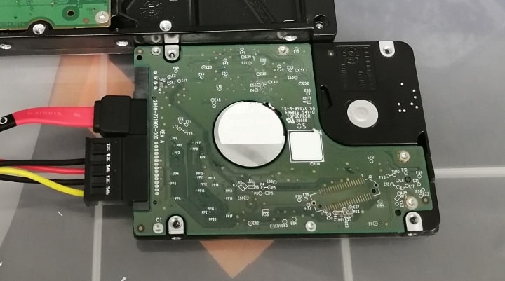 専用機器を使用しての初期診断を行てみたところ、使用されている4台のハードディスクのうちの1台から物理障害が確認されたため、物理障害での対応が必要であると判断しました。残る3台のハードディスクからは物理な障害を確認することはありませんでした。
