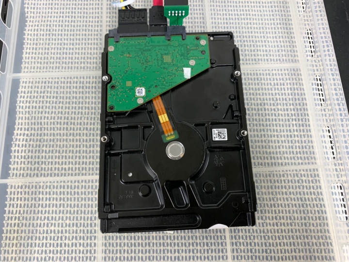 専用機器をにてハードディスクの診断を行ったところ、起動から認識までは正常に行えたのですが、データ領域へのアクセスを行った際に不良セクタと呼ばれるデータの読み書きができない領域が見つかりました。専用機器を使用してのクロ―0ン作業が必要であると判断し、物理障害で対応を行うことにしました。