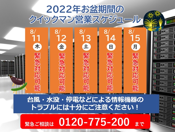 データ復旧 クイックマンへのお問い合わせはフリーダイヤル 0120-775-200まで。