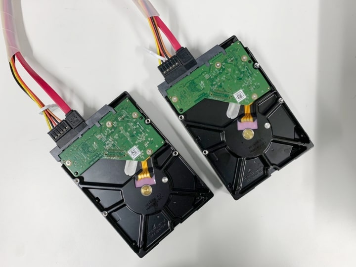 障害の発生しているハードディスクを専用機器で制御しクローンハードディスクを作成する作業を実施しました。また、障害の発生していないハードディスクもデータを保全する為には、クローン作業を行い8台のハードディスク全てのクローンを作成しました。その後、クローンハードディスクに書き込まれている情報を確認したところ、障害の発生している1番、2番、7番のハードディスクの内、2番、7番のハードディスクには最新のデータが保存されていないことを確認しました。また、残りのハードディスクよりRAID6で構成されている可能性が高いこを確認しました。