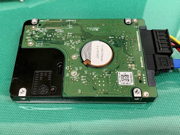 内蔵のハードディスクを専用機器にて初期診断を実施したところ、通電を行ってみても完全不動状態であったため、重度物理障害での対応を行うことにしました。