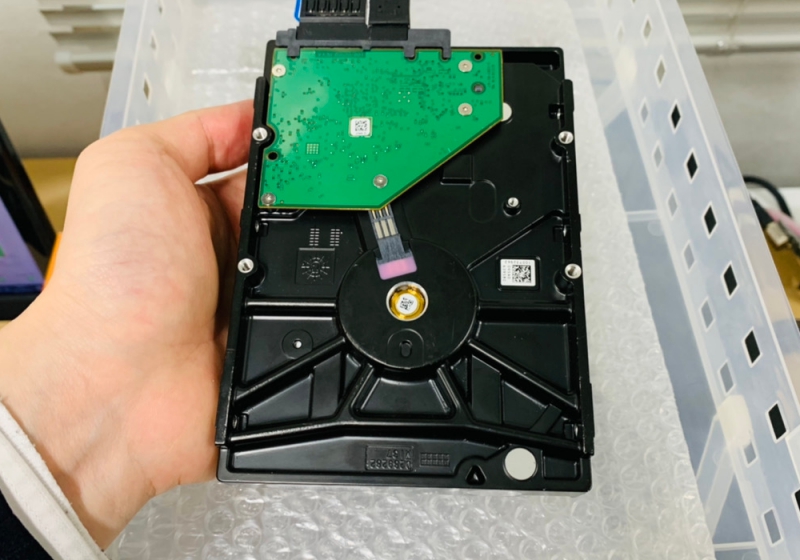 内蔵ハードディスクを塵埃のないクリーン環境で分解し、損傷している磁気ヘッドの交換を行うことで専用機器上で認識させることができるようになりました。