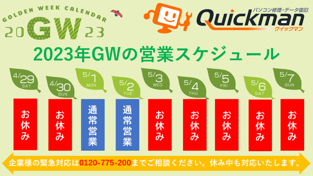 2023年GWもデータ復旧緊急...