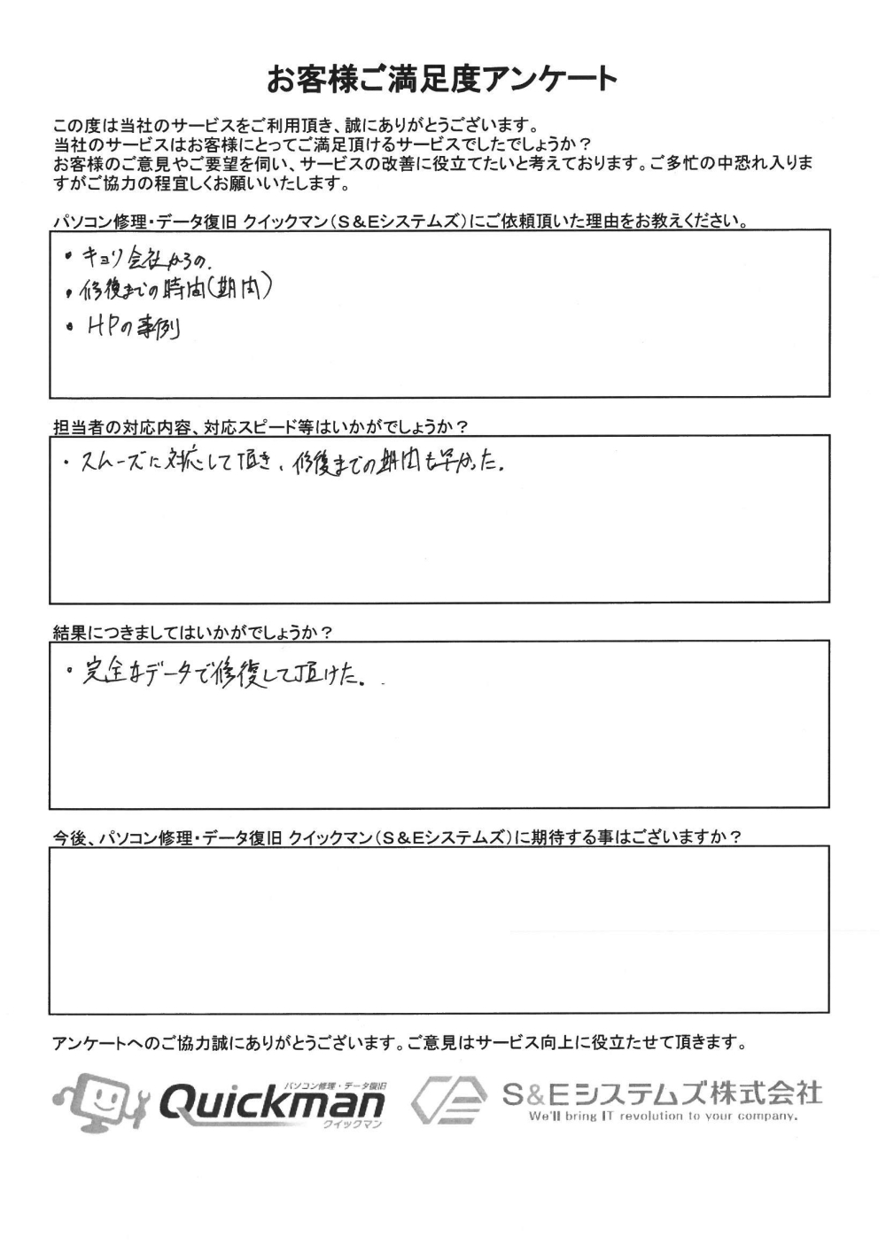 当社のデータ復旧をご利用頂いたお客様から頂いたお声をご紹介いたします。