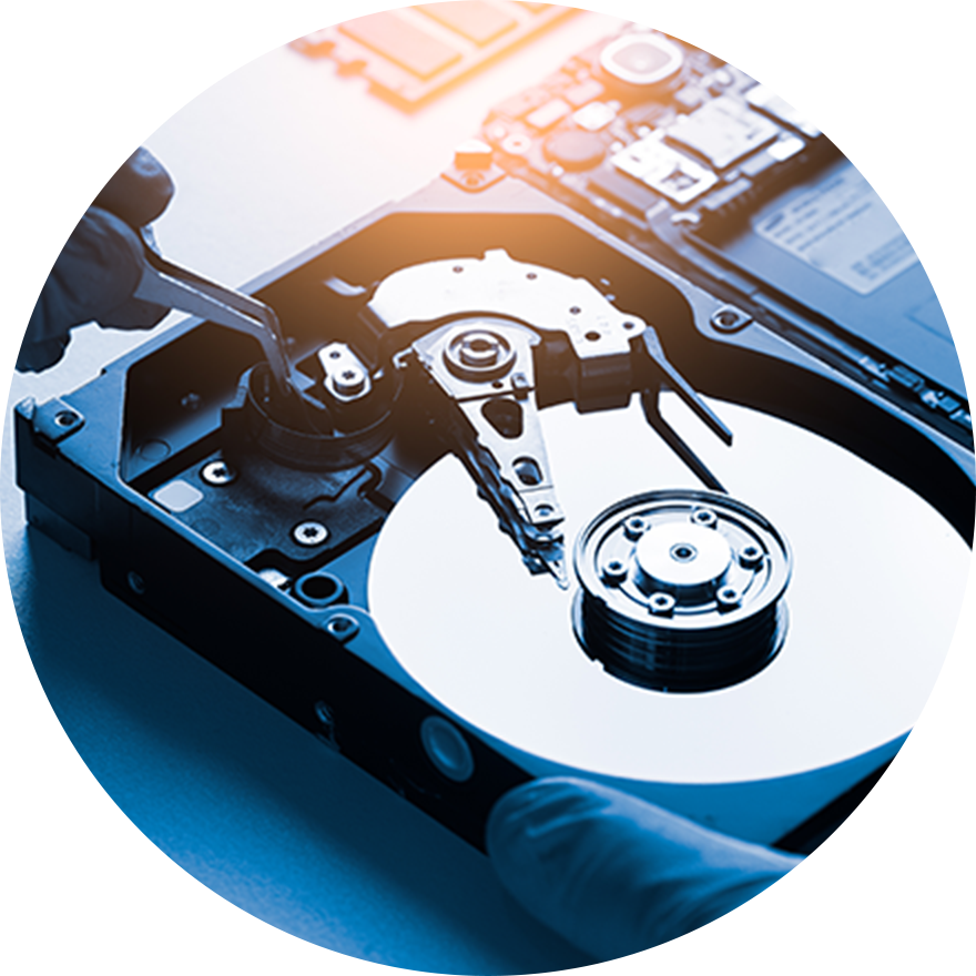 弊社のデータ復旧には警察機関や官公庁などでも使用される最新の復旧ツールを利用し高い復旧率を実現しております。また、ハードディスクの分解作業が必要な重度物理障害対応も全て自社内で対応が可能です。専門知識・技術を持ったエンジニアがお客様のデータを安全に確実にスピーディーにデータ復旧いたします。