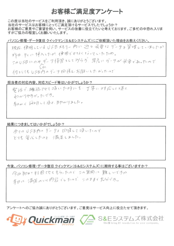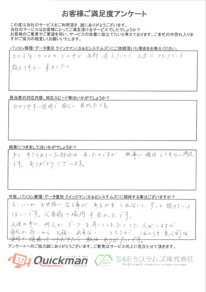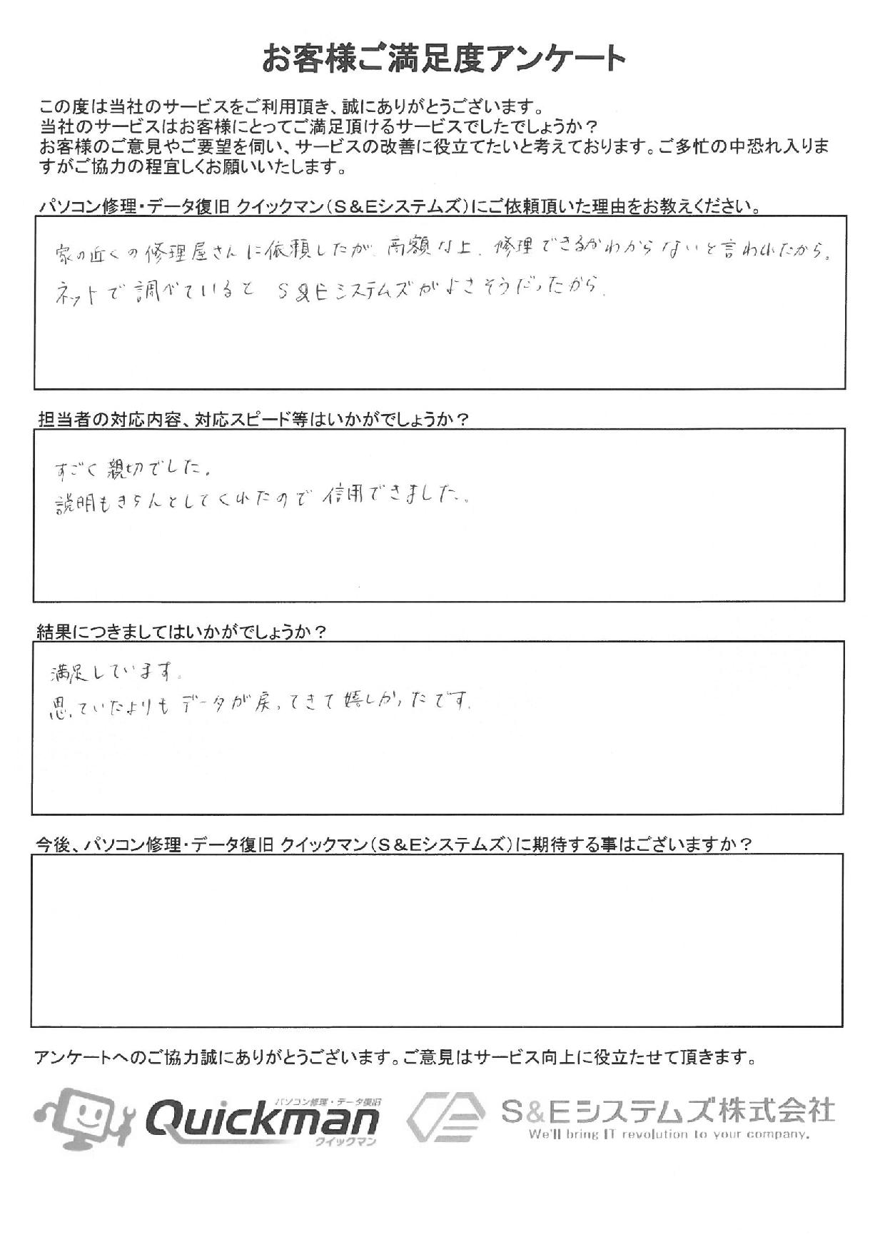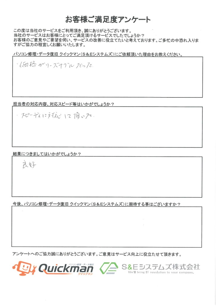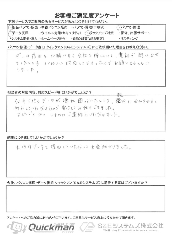 当社のデータ復旧をご利用頂いたお客様から頂いたお声をご紹介いたします。
