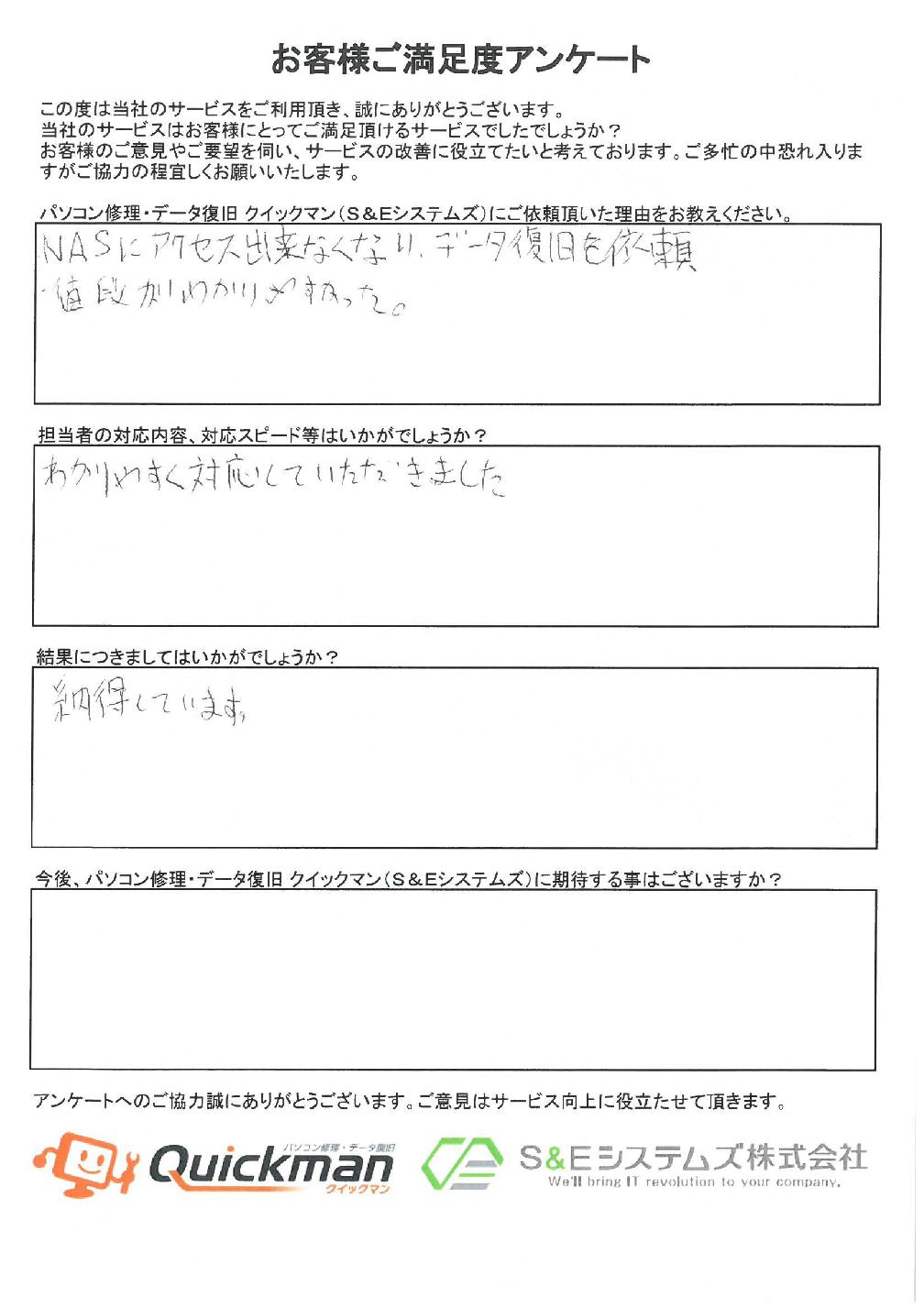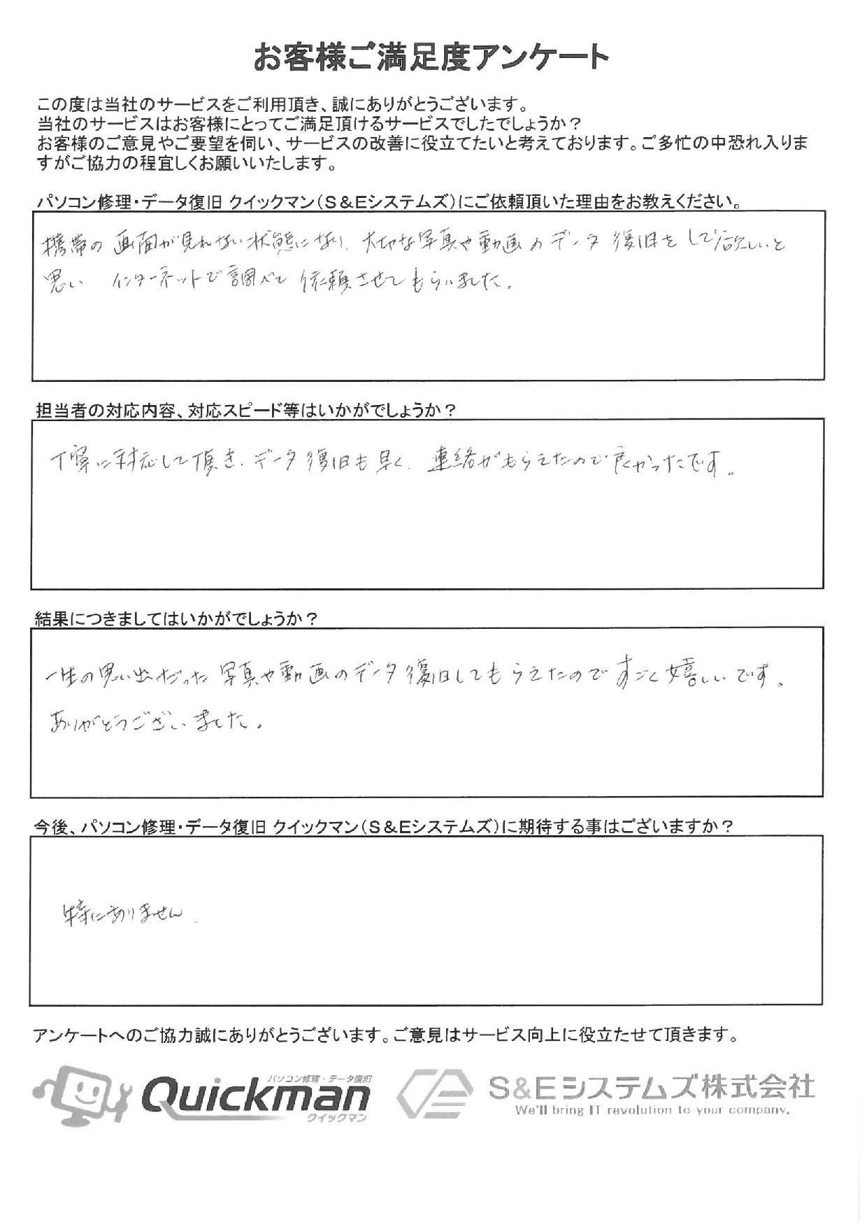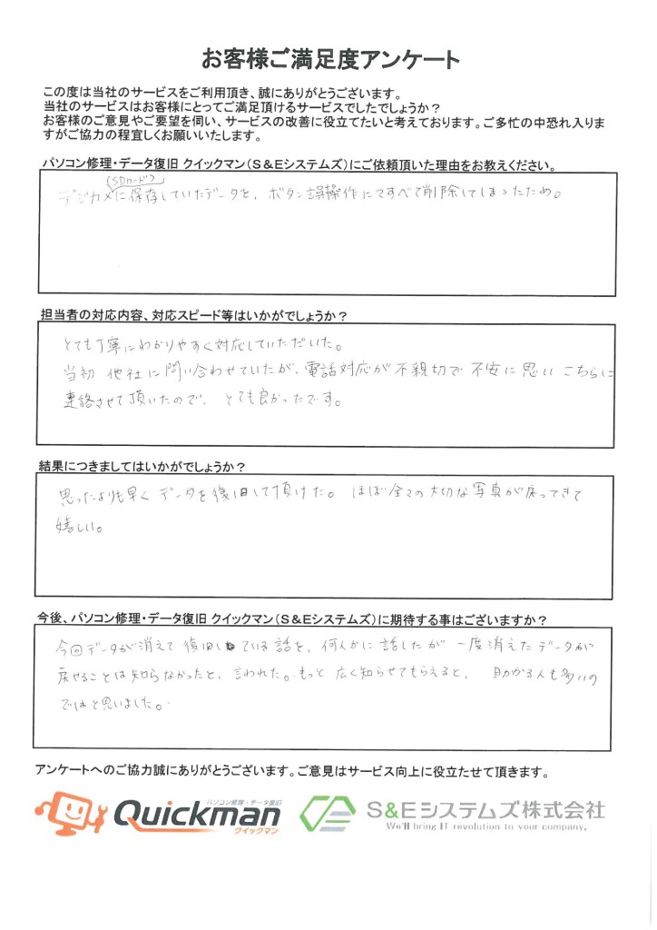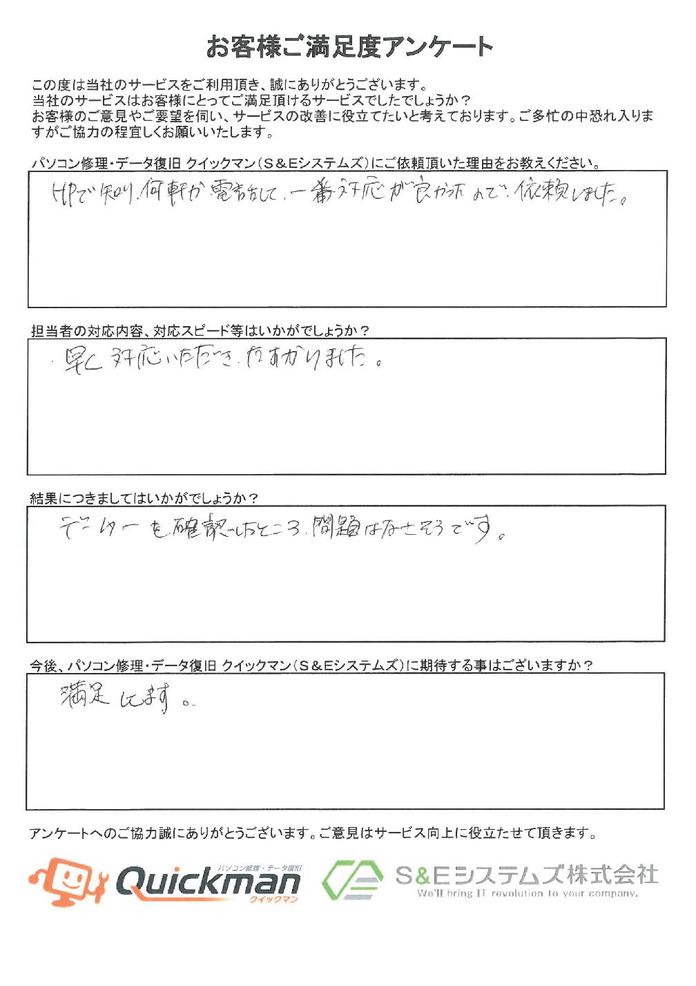 当社のデータ復旧をご利用頂いたお客様から頂いたお声をご紹介いたします。