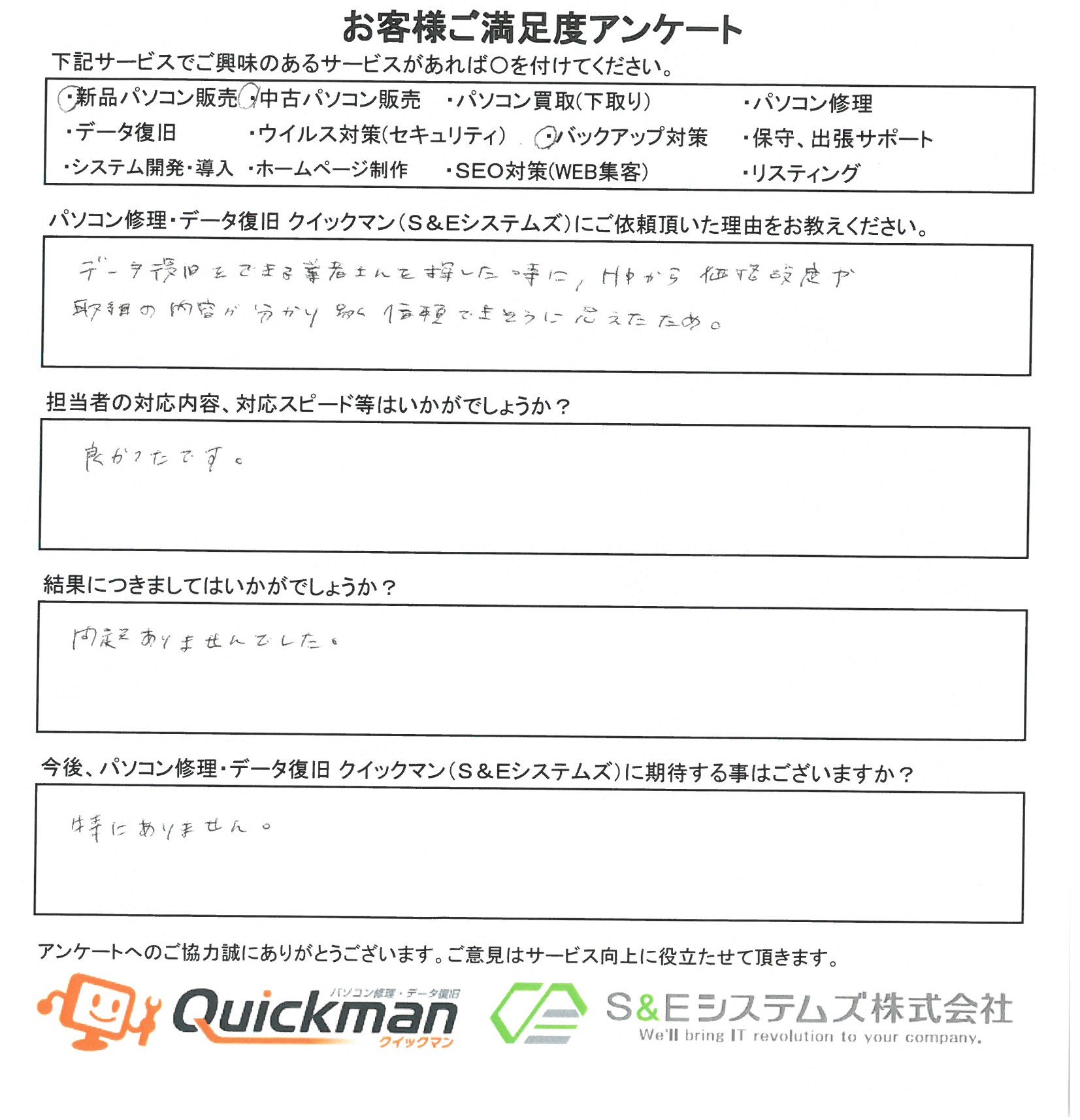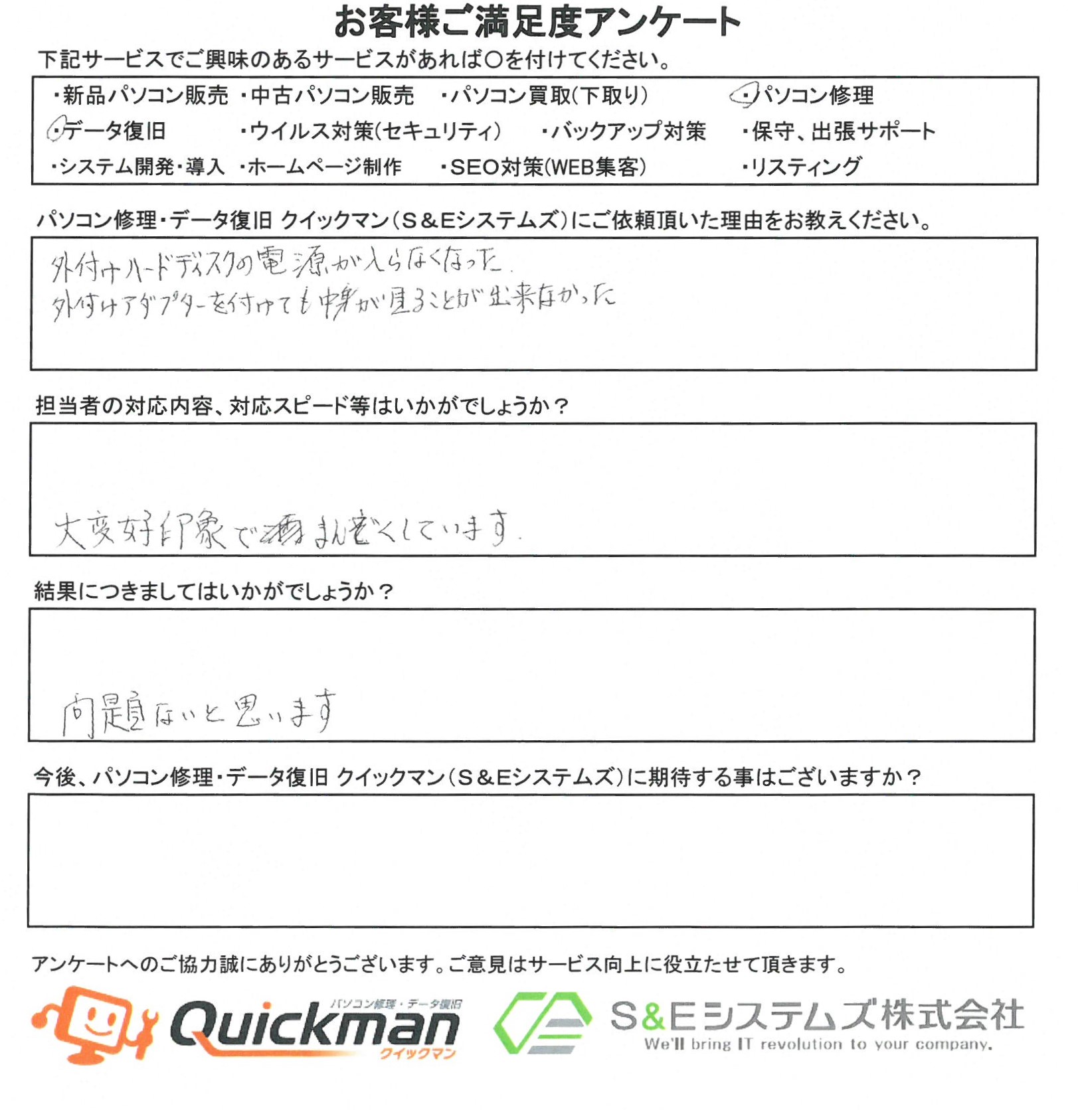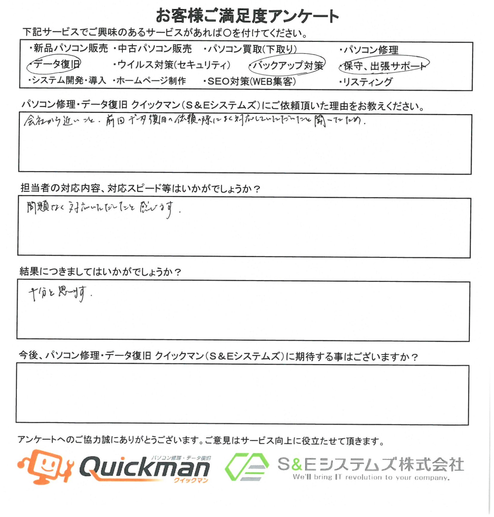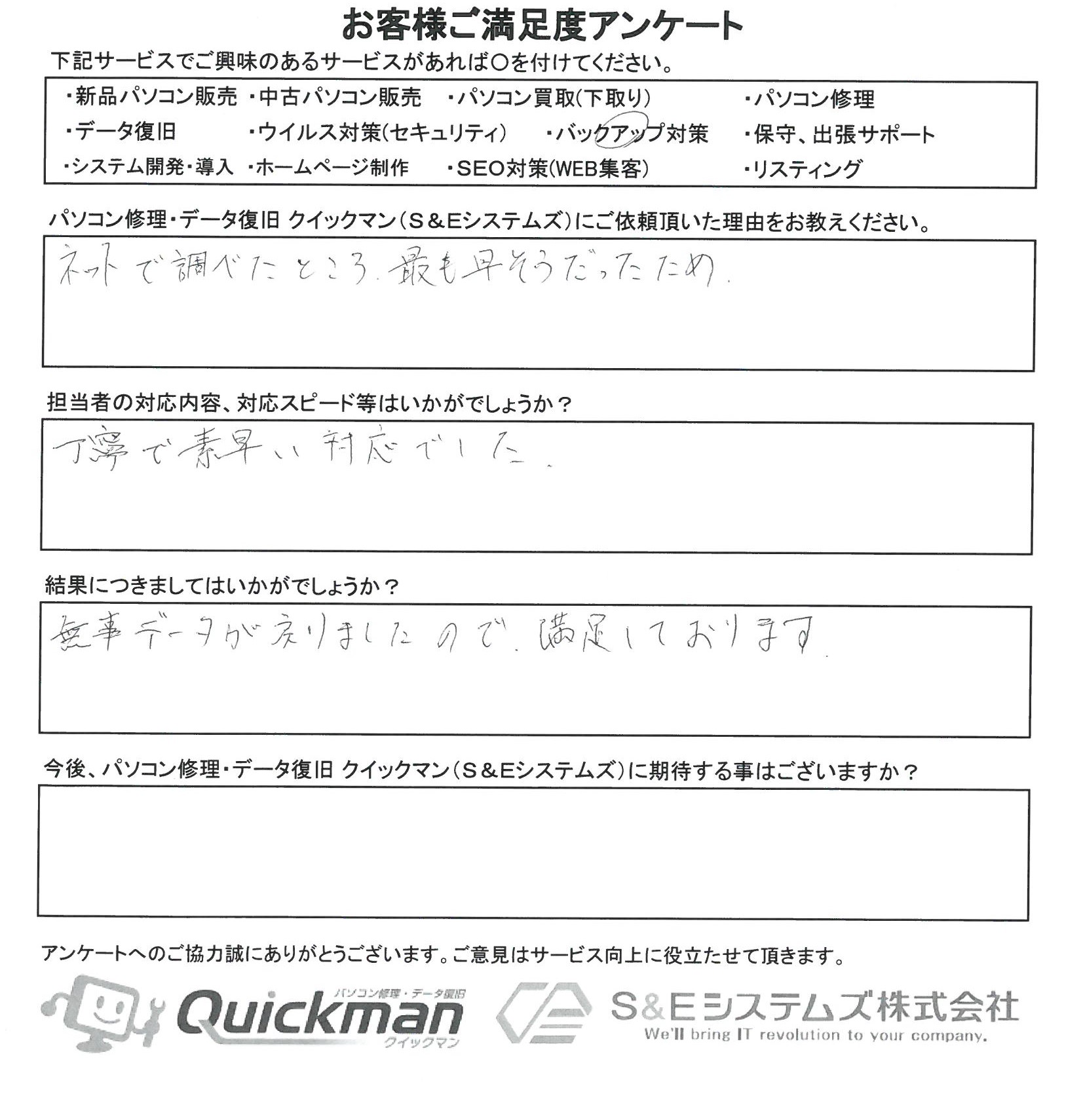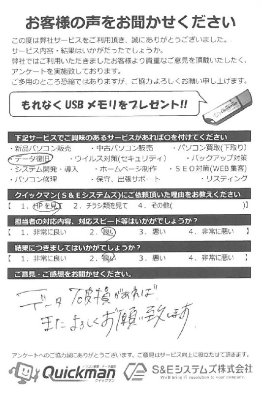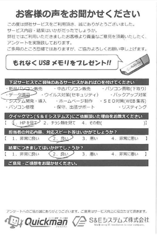 当社のデータ復旧をご利用頂いたお客様から頂いたお声をご紹介いたします。