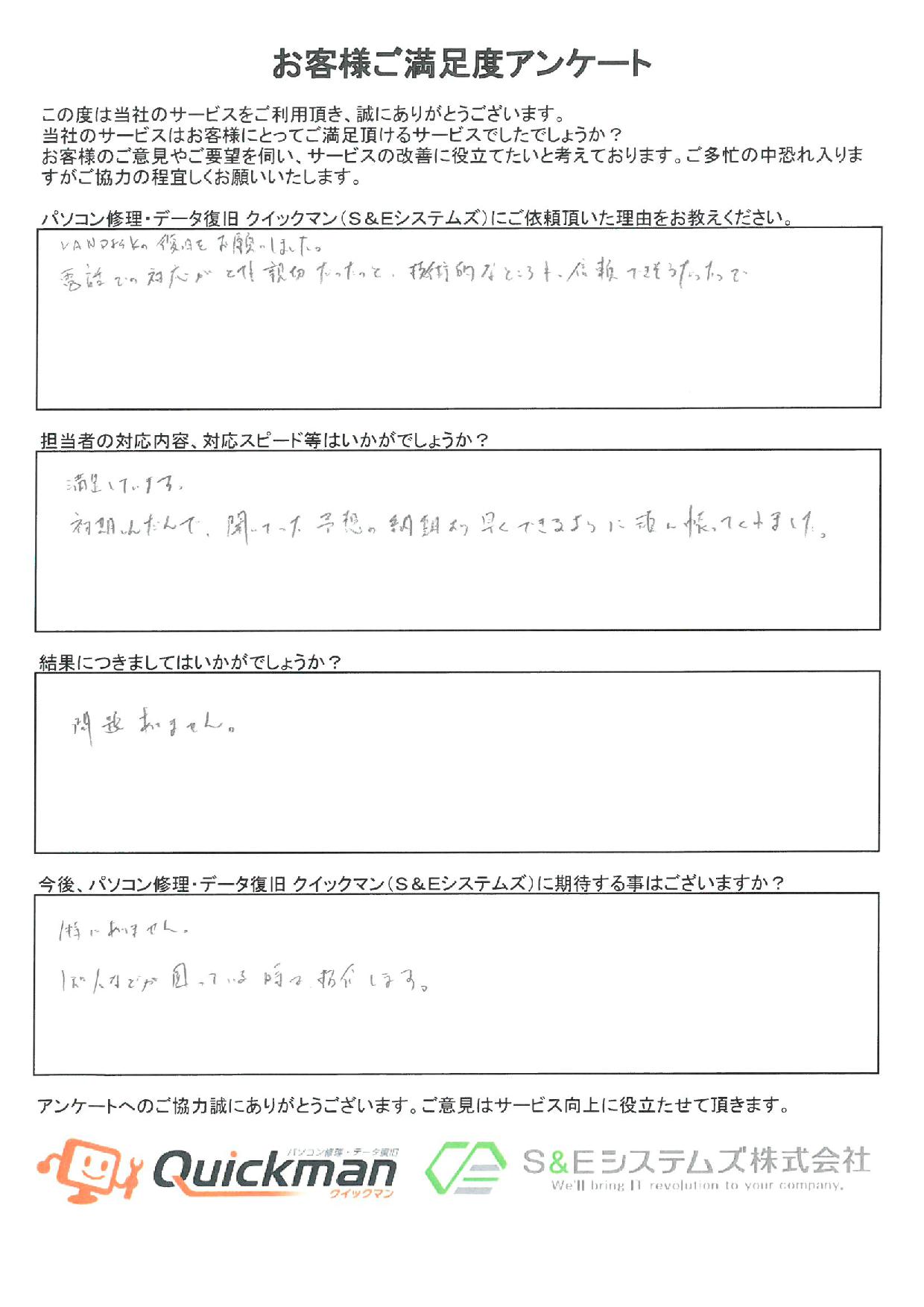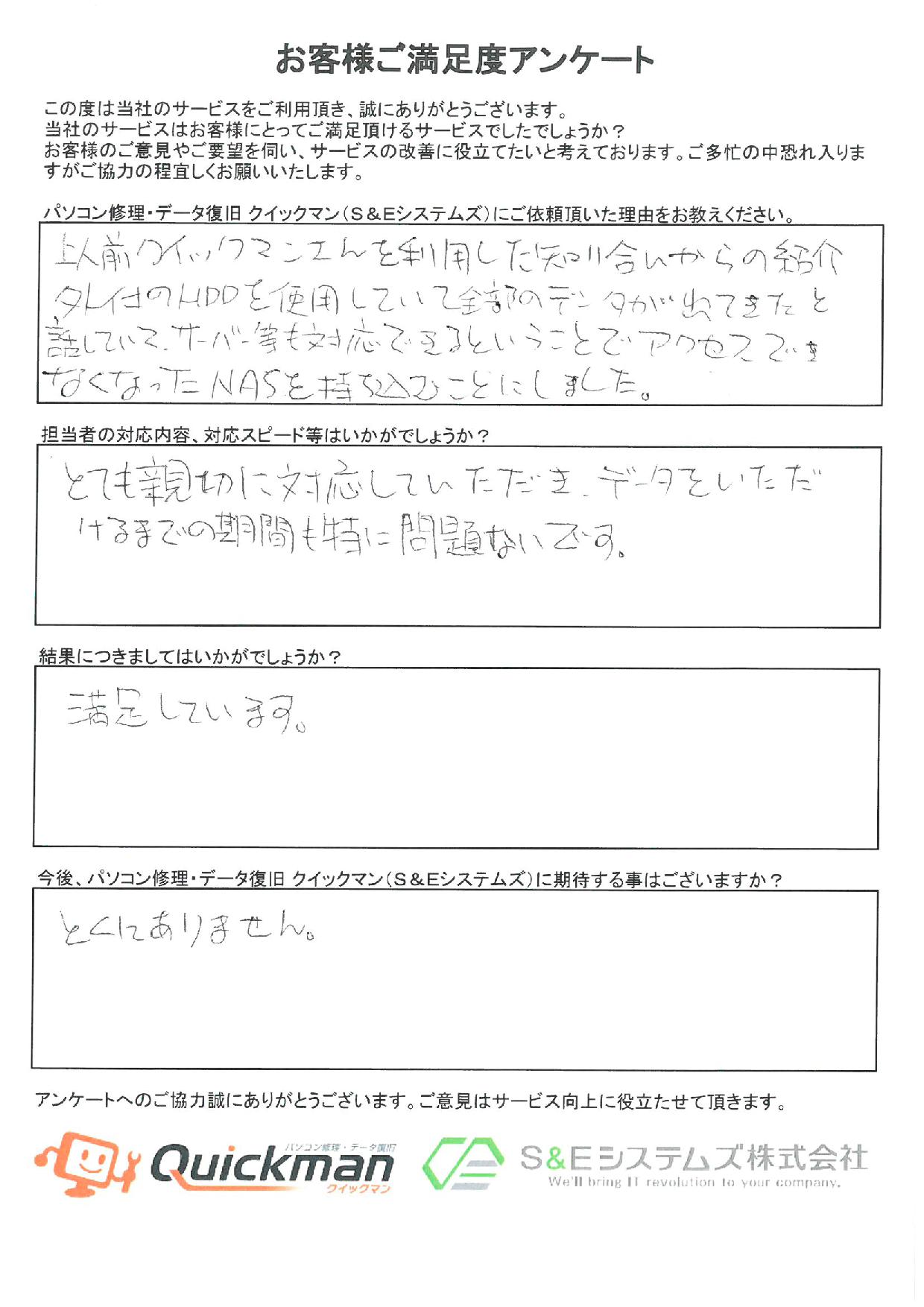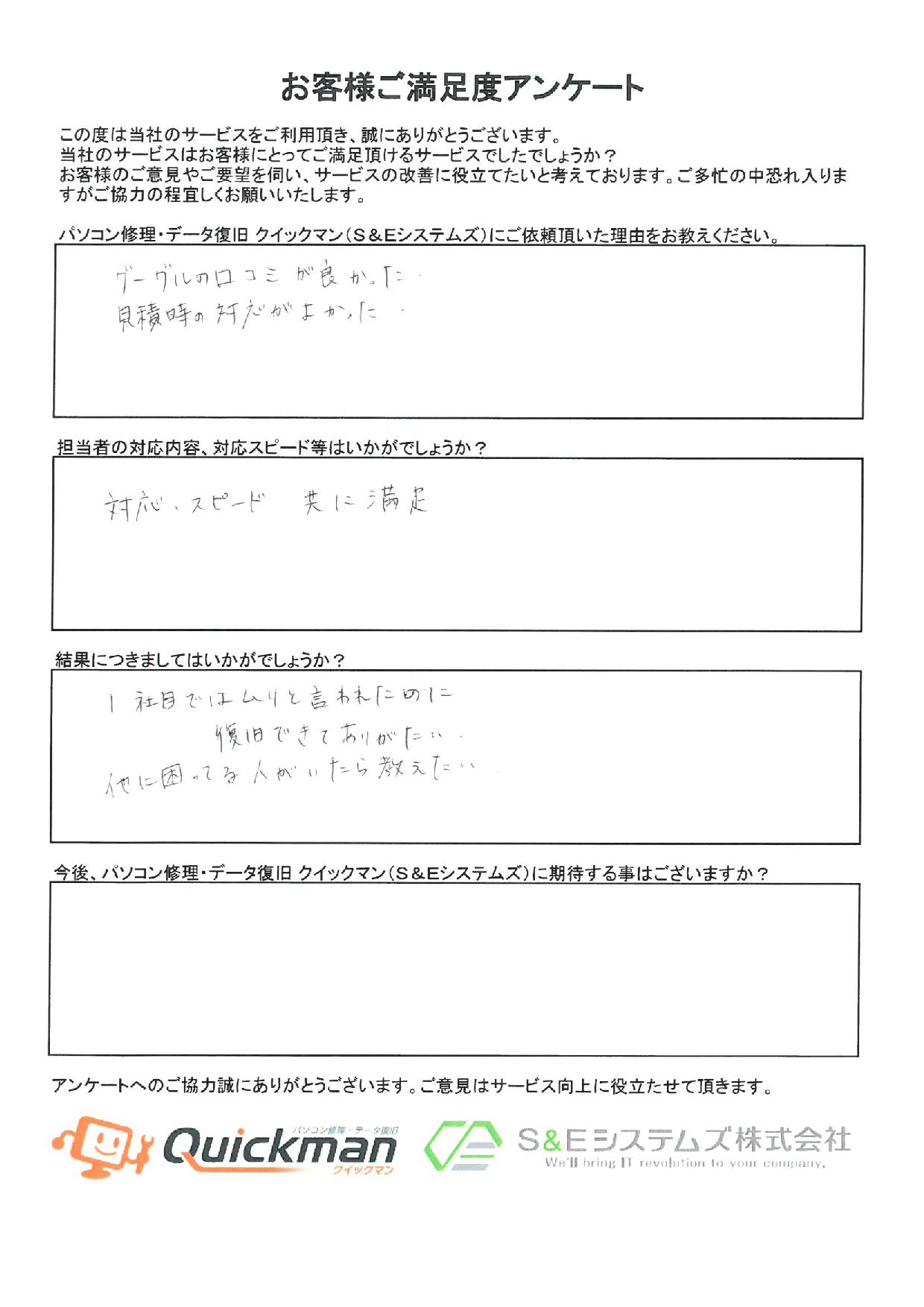 当社のデータ復旧をご利用頂いたお客様から頂いたお声をご紹介いたします。