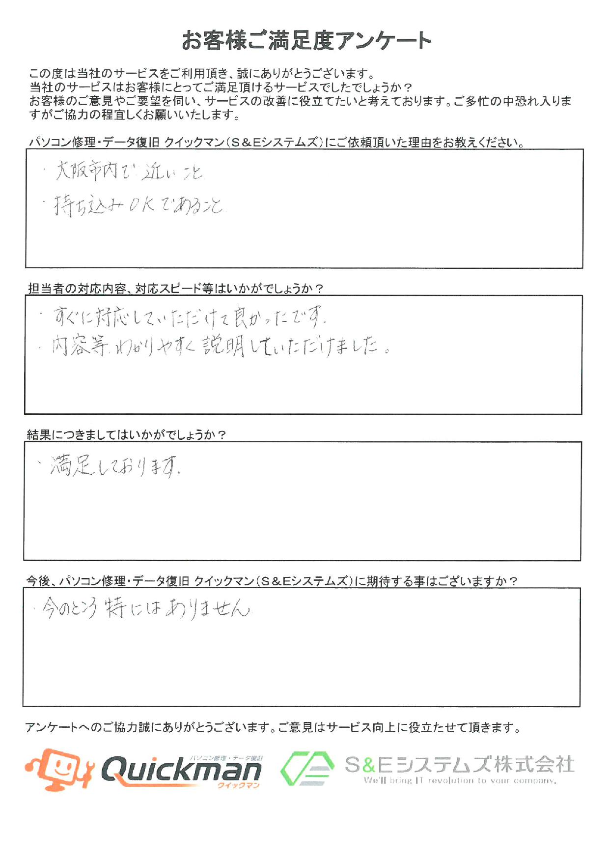 他社様で復旧できなかった重度障害のハードディスクのご対応をさせていただいた女性のお客様