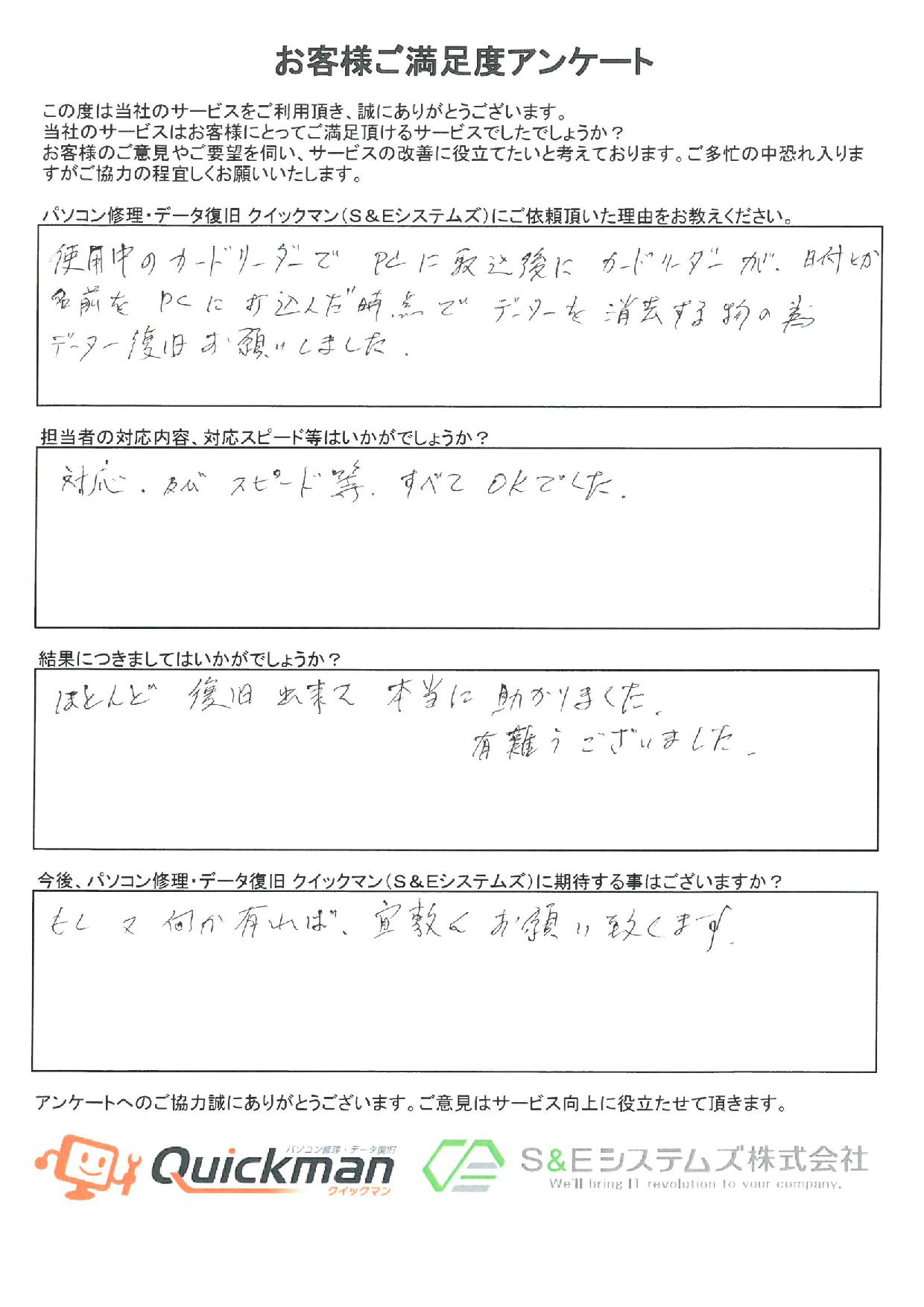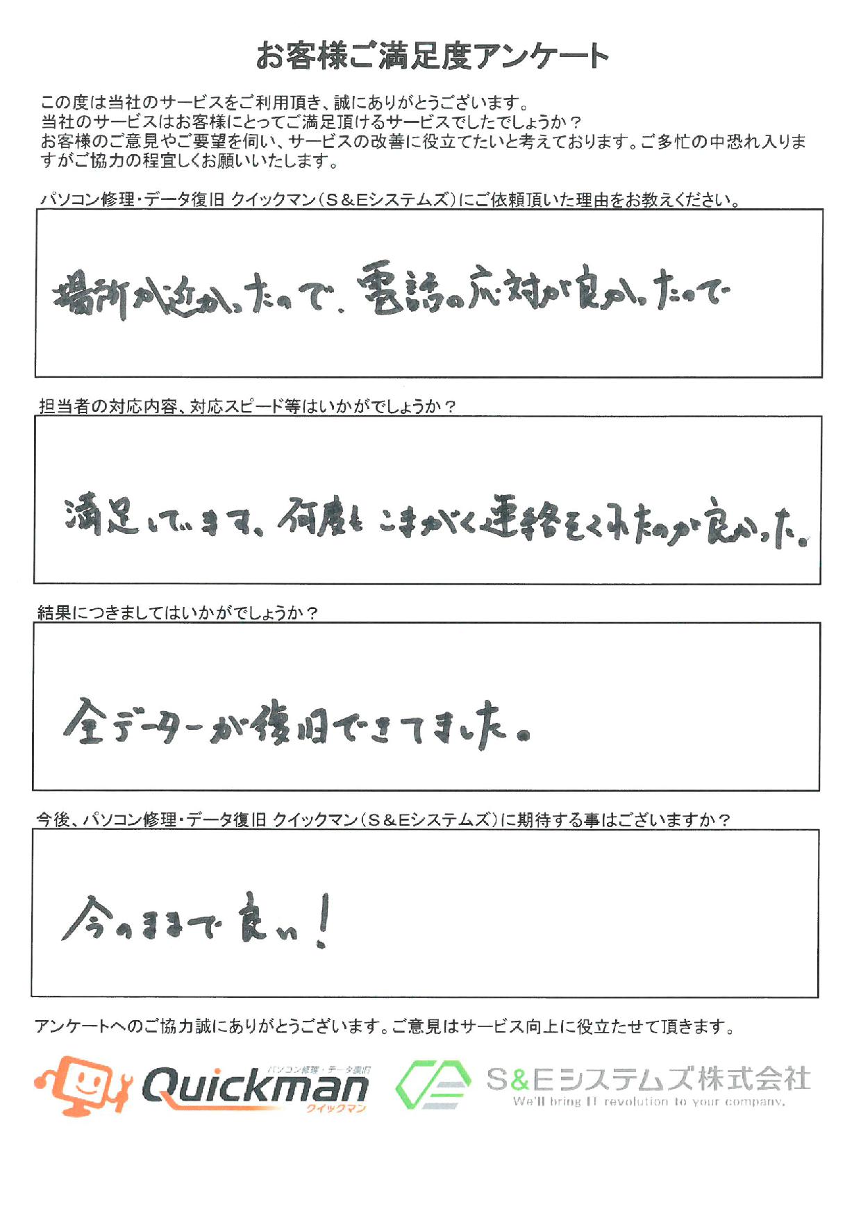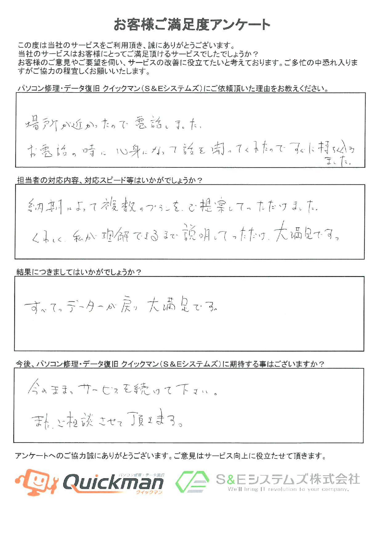 当社のデータ復旧をご利用頂いたお客様から頂いたお声をご紹介いたします。